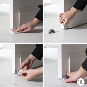 Butée très facile à installer par double face fourni sur sol et porte. Force aimant faible, se débloque d'un seul doigt,