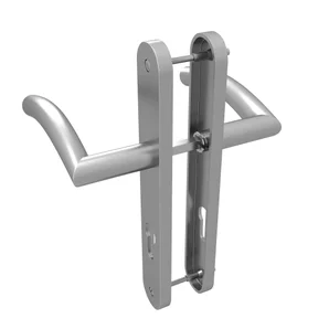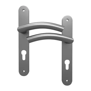 2 poignées sur plaque à cylindre Margaud inox nickel brillant, entraxe 195 mm
