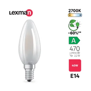 Ampoule led flamme lisse e14 2w=40w 470lm depoli 2700k classe a lexman
