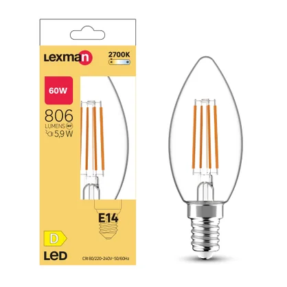 Ampoule led flamme verre e14 5,9w=60w 806lm claire 2700k lexman
