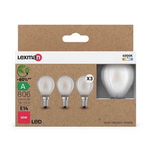 Ampoule led spherique e14 3,8w=60w 806lm depolie 4000k classe a x3 lxm