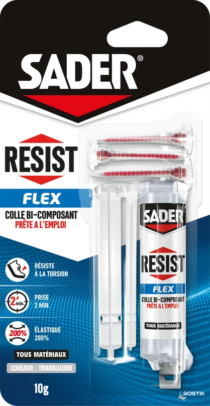 Colle de reparation epoxy bi-composant sader resist flex seringue 10g