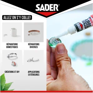 La marque française de colles Sader est à vos côtés depuis 65 ans pour vous accompagner dans vos projets de bricolage. A partir de notre savoir-faire en colles bois et néoprène, nous avons développé des colles pour tous les usages : mastics de fixation, glues, colles de de réparations et d'assemblages. Allez on s'y colle, quelque soit votre niveau en bricolage ou votre projet, nous avons une colle adaptée... SADER, on adhère !