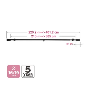 - Composition du kitBarre extensible de 210 à 385cm diamètre 16/19mm 3 supports 2 embouts fixations