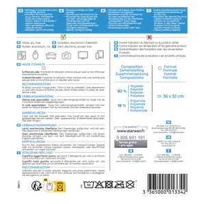 Prix un peu élevé mais super efficace pour vitres et miroirs. Plus besoin des chiffons blancs en coton qui font des peluches et des traces.