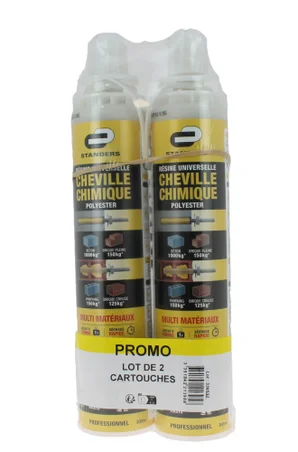 Lot de 2 cartouches de scellement chimique fixation polyester, STANDERS, 300 ml
