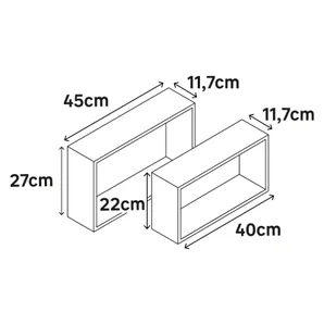 Lot de 2 étagères cube blanc mat, L.45 x H.27 x P.27 cm, Ep.12 mm