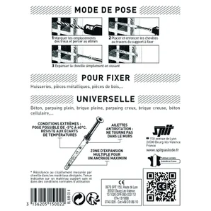 - Composition du kit4 chevilles traversantes universelles BLONG 8x80mm