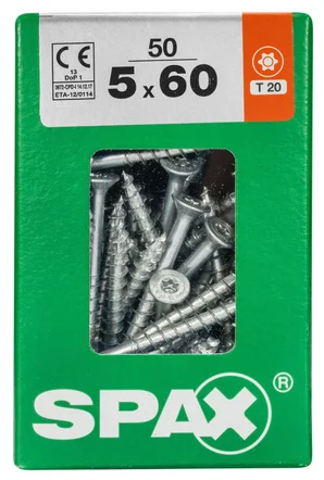Lot De 50 Vis Acier Tête Fraisée Torx Spax, Diam.5 Mm X L.60 Mm