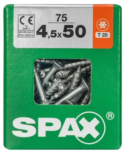 Lot De 75 Vis Acier Tête Fraisée Torx Spax, Diam.4.5 Mm X L.50 Mm