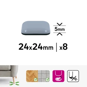Lot de 8 patins gliss+adhésif STANDERS gris 24x24mm