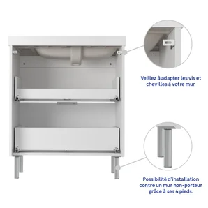 Pré trous non percés Bonde empêche le tiroir de s’ouvrir Une fois la vasque posée le tiroir supérieur ne s’ouvre pas N’achetez pas !