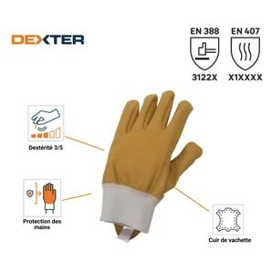 Paire de gants pour outil de manutention cuir, T 9 DEXTER