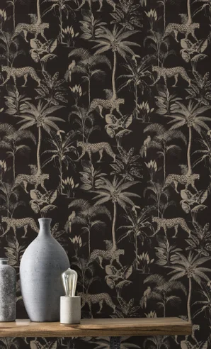 Papier peint vinyle sur intissé Savane noir et doré