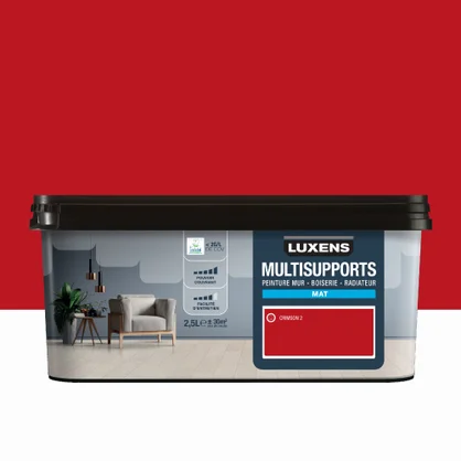 Peinture rouge crimson 2 mur, boiserie, radiateur LUXENS mat 2.5 l
