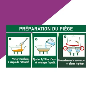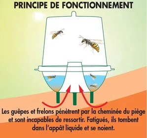 - Précautions d'emploiPositionner le piège à l’écart de la table de jardin afin d’éviter la compétition avec les aliments qui sont très attractifs pour les frelons lors des repas. Placer le piège hors de portée des enfants. Vérifier que tous les insectes sont noyés avant de vider le piège.