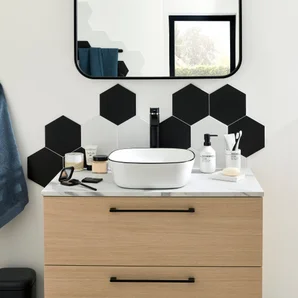 Excellent rendu,imite parfaitement le marbre. Reste à voir la résistance à l’eau puisque installé sous une vasque à poser