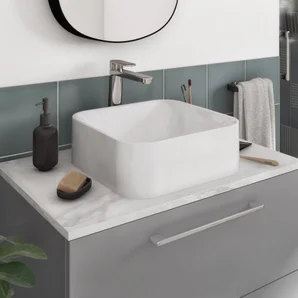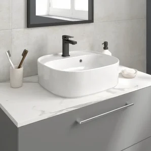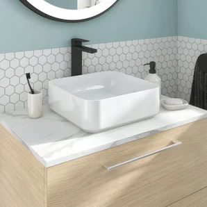 Plan de toilette aggloméré effet marbre blanc Ep.1.8 x l.90 x H.49 cm Remix