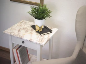 Je m’en suis servi pour rénover une table basse avec des moulures, très facile en faisant chauffer les coins au sèche-cheveux. Je vais également en mettre sur ma machine et mon sèche-linge pour que ce soit en accord avec la déco
