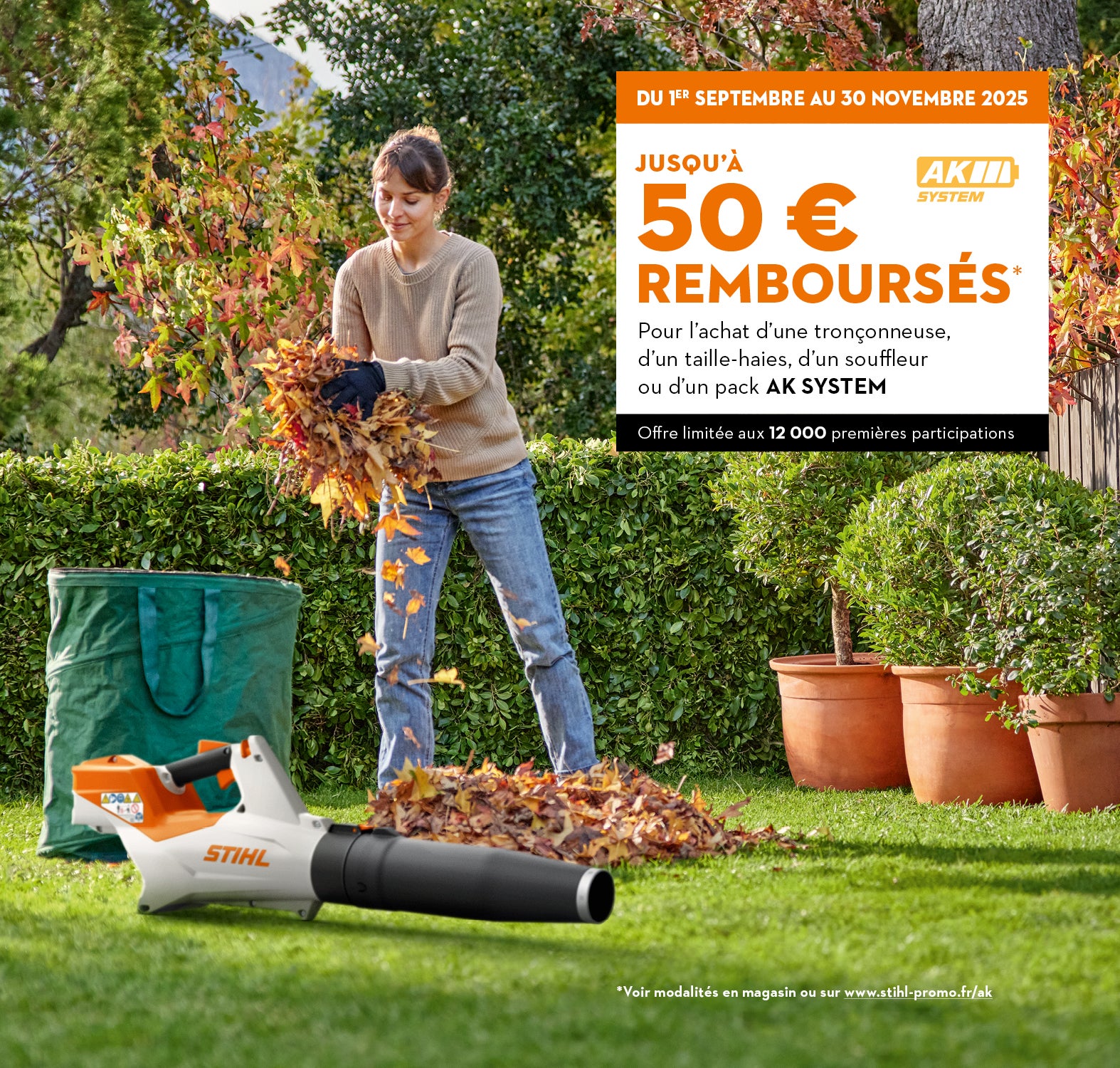 Pour consulter les conditions de participations, rendez-vous en magasin, sur la page web de l’offre https://www.stihl-promo.fr/ ou les modalités ici