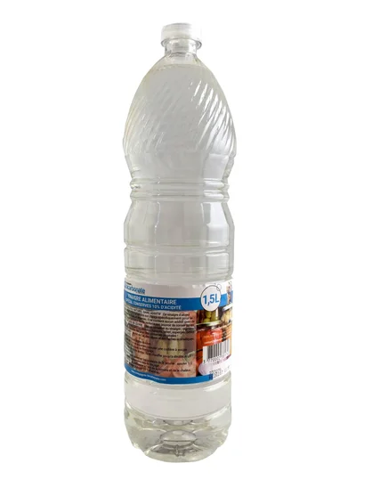 Nom du produit : Vinaigre blanc 10° de qualité alimentaireType de produit : Liquide de conservation Marque du produit : La Compagnie du BicarbonateUsage du produit : Conserver les alimentsDescriptif : Notre vinaigre blanc est de qualité alimentaire et est obtenu à partir de sucre de betterave. Vous pourrez donc l’utiliser pour améliorer vos préparations culinaires ou conserver vos aliments. Plus produit : Ce vinaigre blanc, bien qu’il soit alimentaire, peut être utilisé pour détartrer (cafetière, bouilloire, robinetteries par exemple). Conseil d'utilisation : - Pour attendrir les viandes : Il suffit de laisser macérer toute une nuit la viande dans le vinaigre blanc et des épices préalablement ajoutées au liquide, puis la faire cuire. - Pour conserver les aliments : Il faudra sécher les aliments en question, les faire dégorger dans du gros sel (ex : des cornichons) et les faire dessaler 1h au moins dans de l’eau froide. Ensuite, il sera nécessaire de les mettre dans un bocal hermétique et d’y verser du vinaigre blanc avec les herbes aromatiques de votre choix à hauteur. Restriction d'usage : N’utiliser que pour l’usage prévu. Faire un test au préalable. Contenance : 1,5LConsistance : LiquideParfum : NeutrePays de fabrication : France